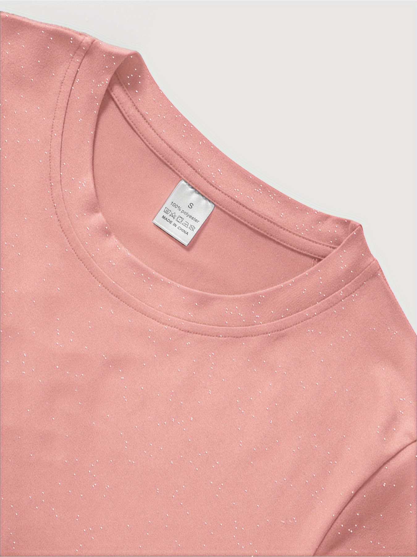 Women'S Sparkly Sequin Short Sleeve T-Shirt - Round Neck, Beige Casual Top for Spring/Summer, Glittery and Stylish, Perfect for Casual Attire