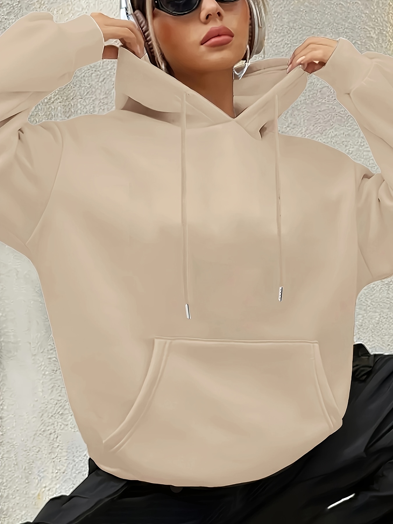 [Cute Cartoon Hoodie] Cute Cartoon Graphic Women's Fashion Hoodie | Long Sleeve, Drawstring Hood, Beige, Casual Fall/Winter Pullover