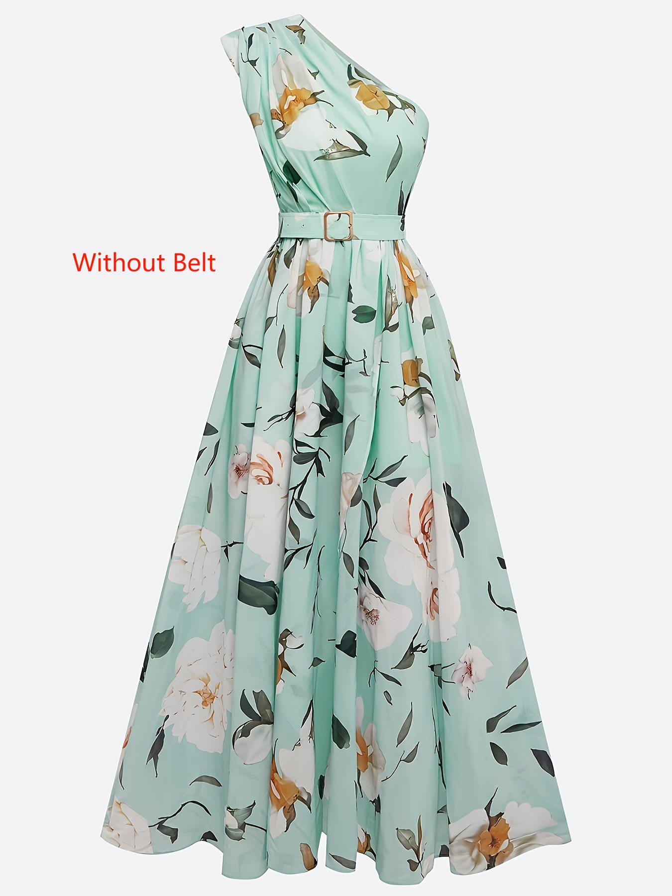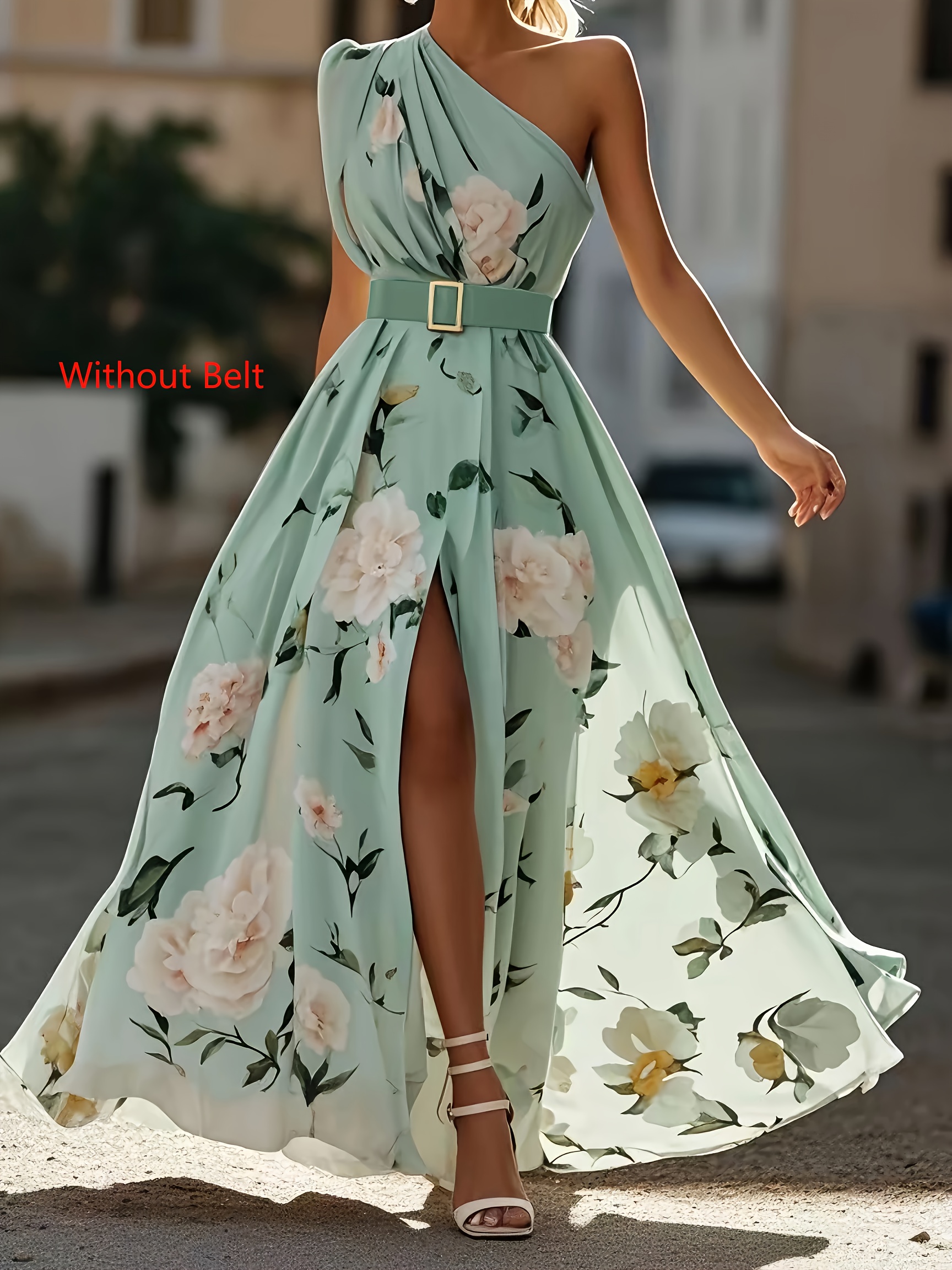 Women'S Elegant Floral maxi dress - One Shoulder Formal & casual party, Wedding Guest Gown - Lightweight Chiffon A-Line Dress with Flowy Train - Spring/Summer/Fall Evening Outfits - LL168, Spring Fashion, Asymmetrical Hemline, Delicate Detailing