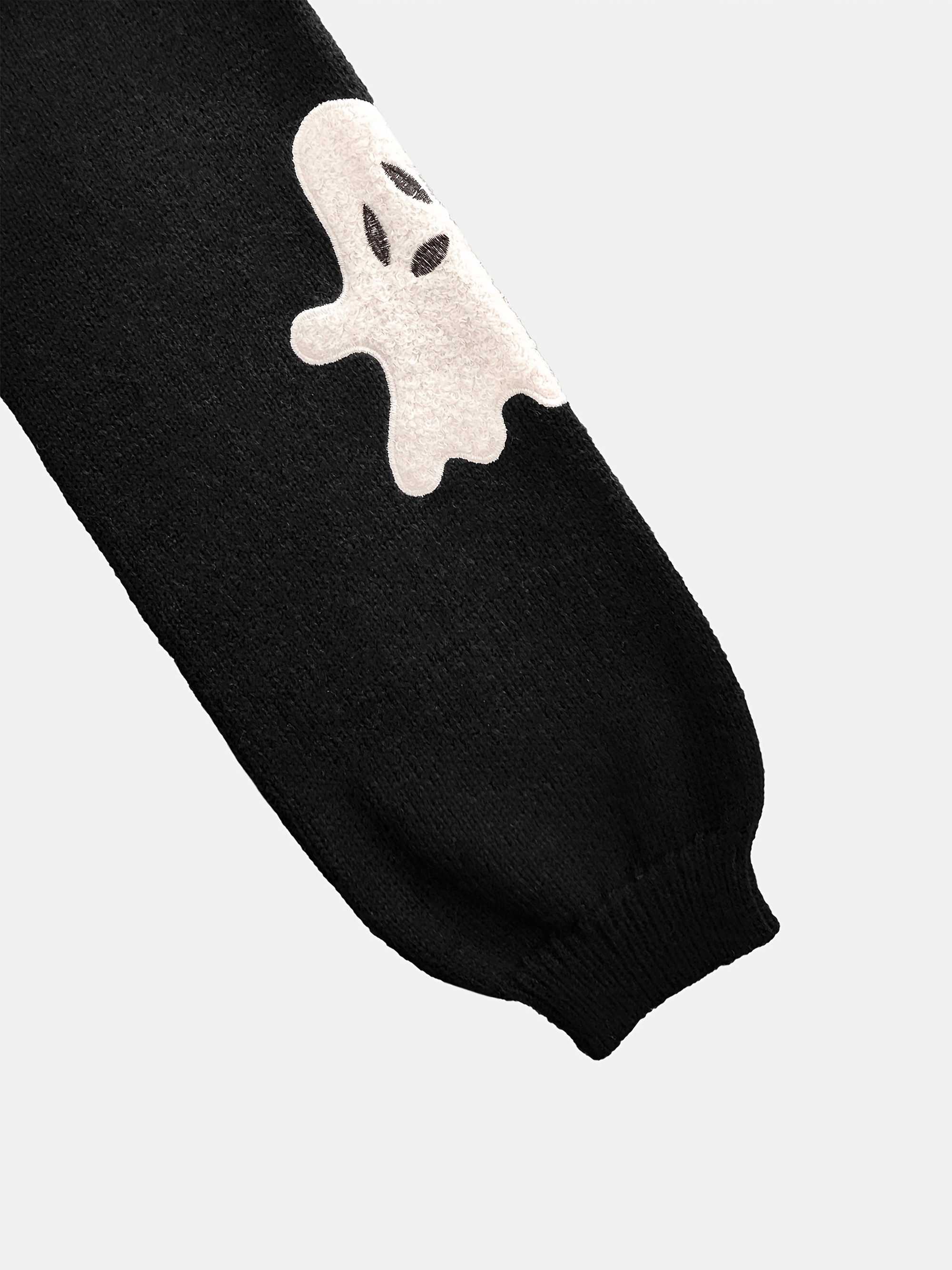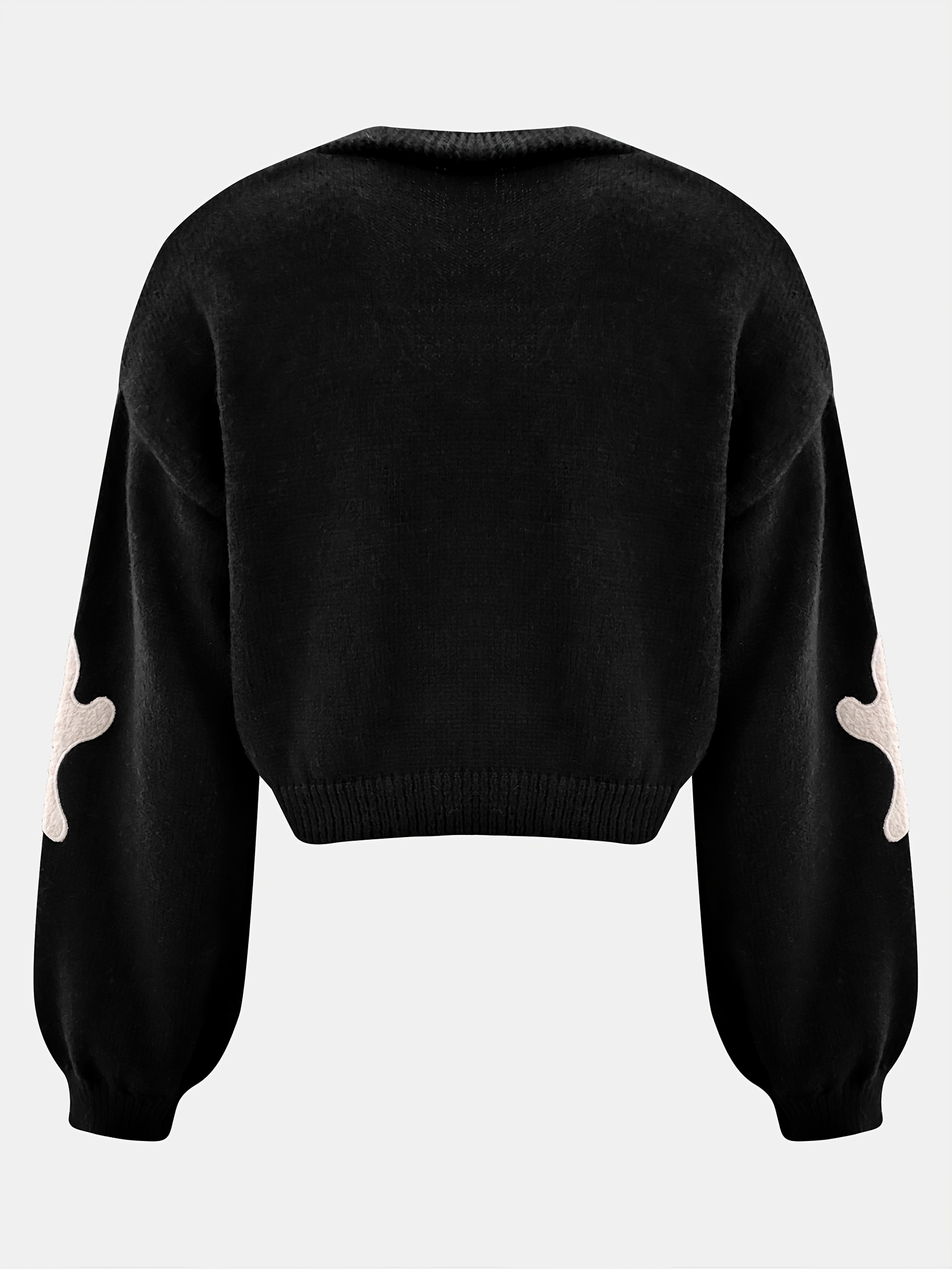 Women's Halloween Sweater - Black with Orange Pumpkin Patterns, Open Front Closure Cardigan, Non-Transparent Fall Winter Party Outfit, Elegant Halloween Party Jacket for Women, Halloween Clothes, Festive Attire, Medium Elasticity