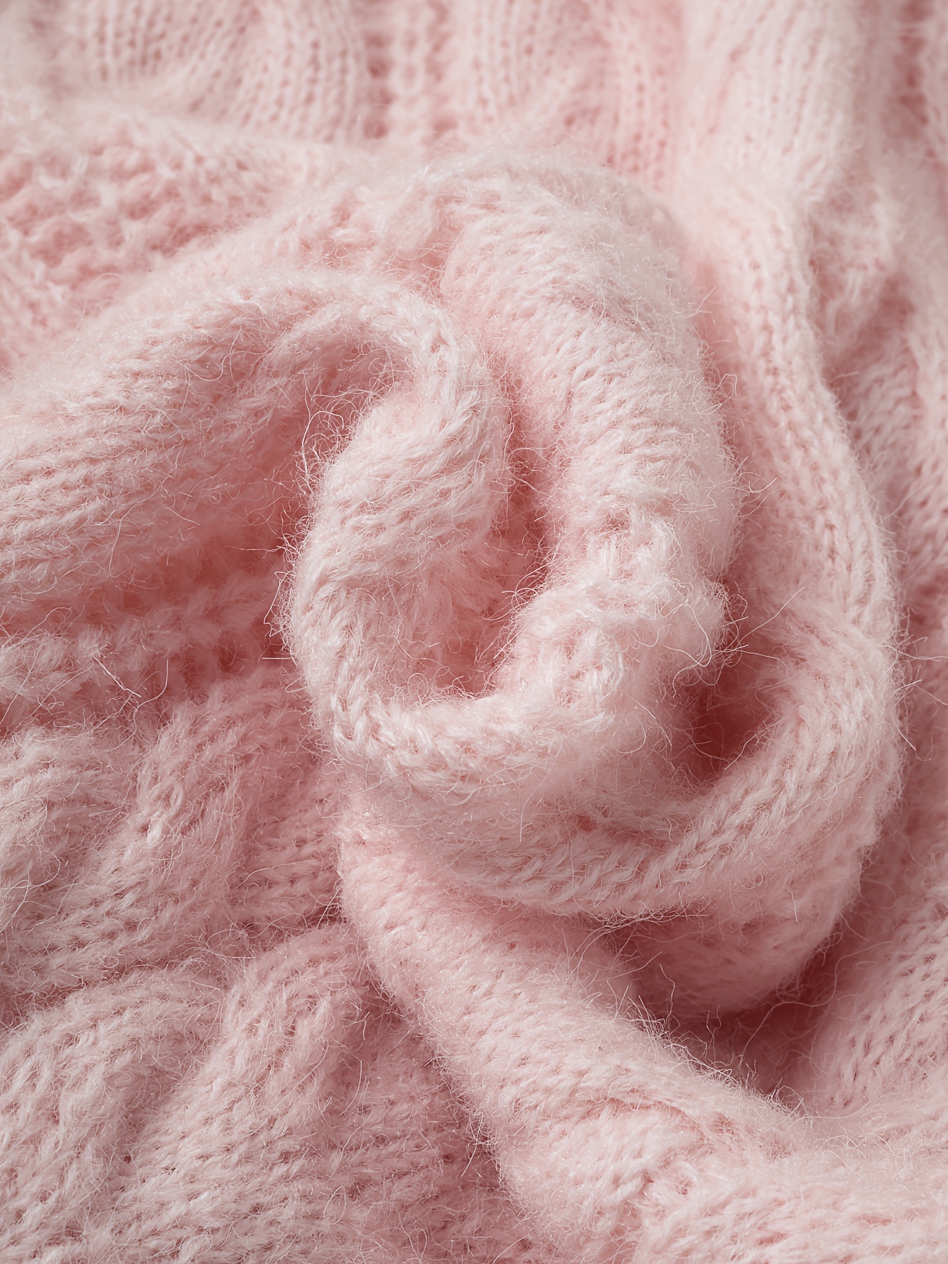 Gentle Pink Lazy Style Premium Loose V-Neck Twist Sweater for Women