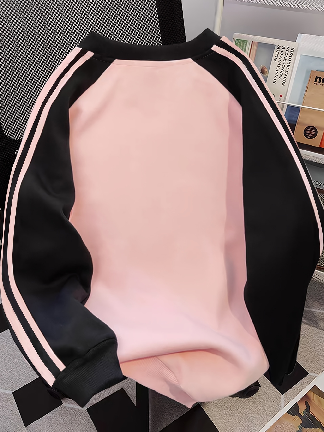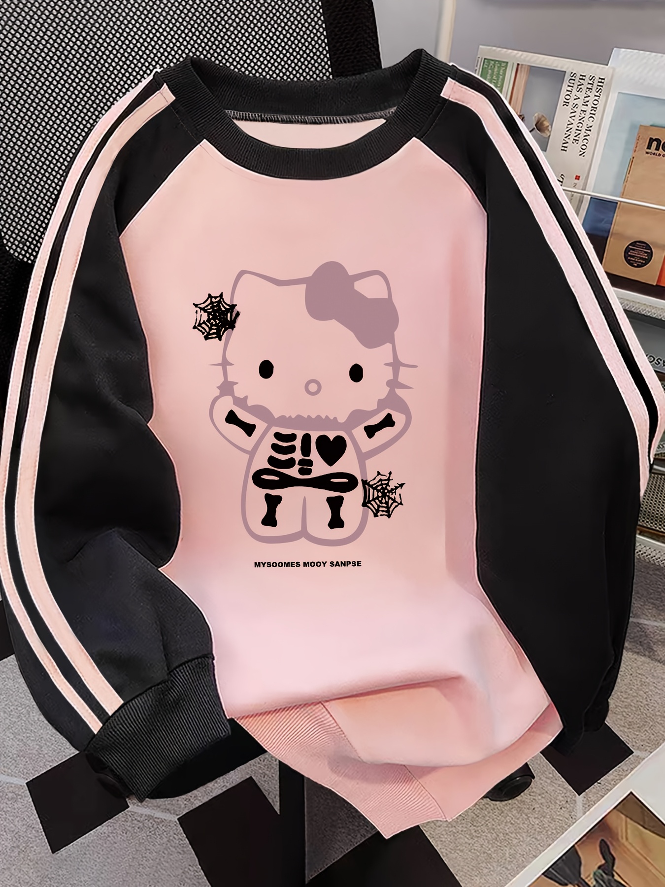 Sanrio Women's New American Trendy Hello Kitty Spider Web Print Long Sleeve Round Neck Loose Fit Casual Fashionable Color Block Top